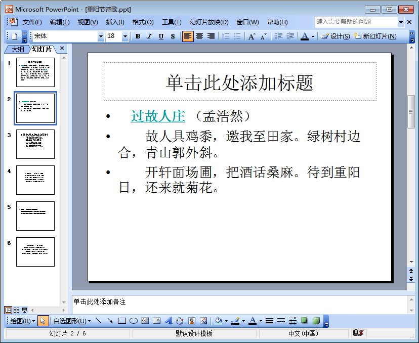 关于重阳节的诗歌你能想到哪几首呢?如果除了“九月九日忆山东兄弟”之外,你真的一时想不起还有那首是和重阳节有关的诗歌的话,那么不妨就随小编一起来看看这份重阳节诗歌介绍ppt吧!该ppt背景简洁,内容完全免费,有需要的朋友可以放心下载使用!