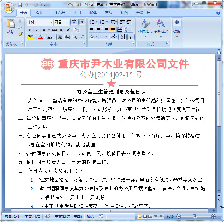 一:为创造一个整洁有序的办公环境、增强员工对公司的责任感和归属感、推进公司日常工作规范化、秩序化、树立公司形象。办公室卫生管理严格按照制度规定运行。