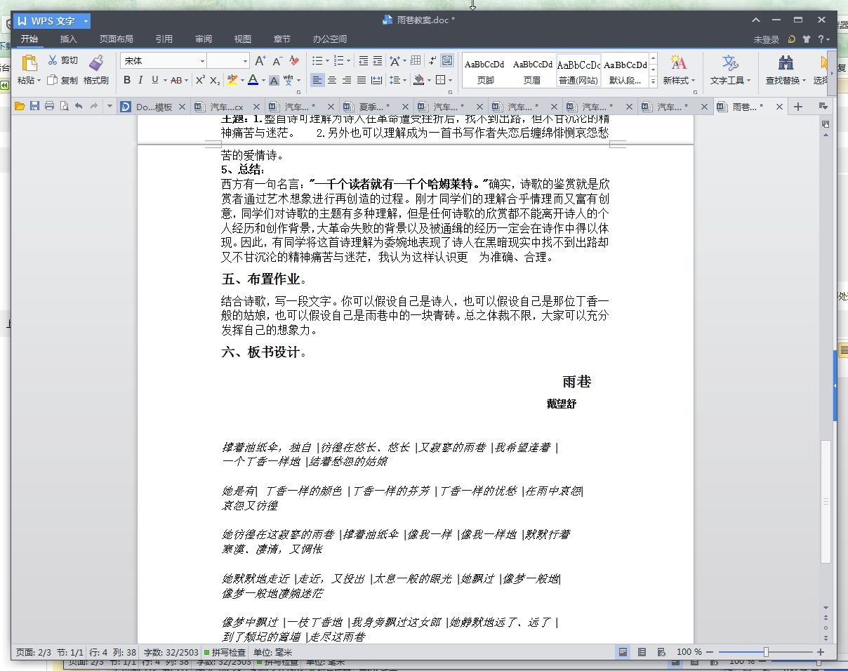 这是由东坡下载站编辑整理的雨巷教学教案,该教案制作的十分精细对课堂上的讲课思路归纳的十分清晰,非常不错的一篇教学教案,有兴趣的老师们可以来下载使用!
