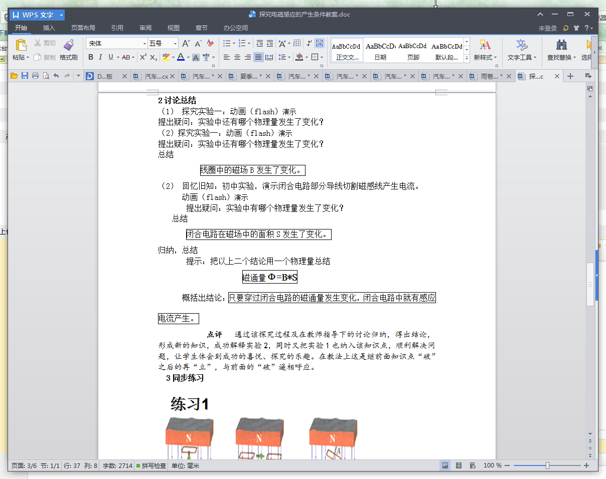 (2)“磁通量变化”是指B、S、sinθ三者的乘积变化,不是指磁场变化,如果三个量中,其中的两个发生变化,Ф不一定会变,就不一定产生感应电流。