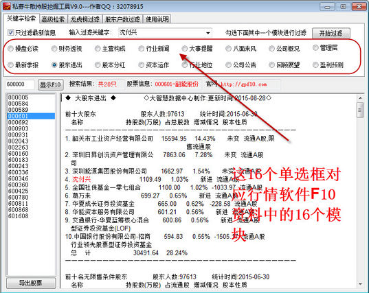 可以检索牛散的最新持股情况。比如超级牛散叶健颜,沈付兴,赵建平,李欣,周信钢,徐开东,徐翔,郑素贞等的最新持股情况。