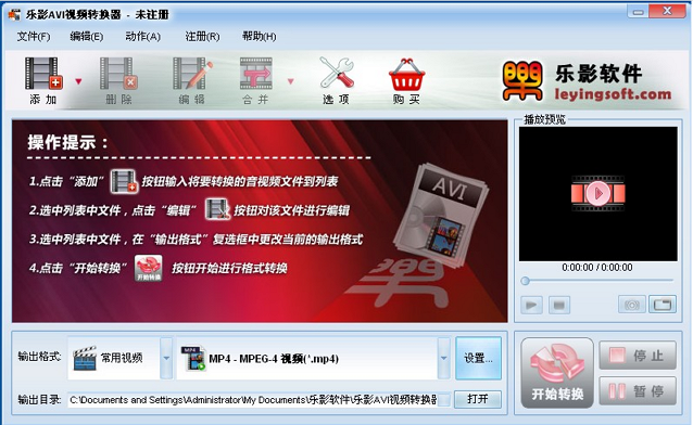 2. 乐影AVI视频格式转换器转换之后的视频文件可以在任何支持AVI的各类手机;数字电视,MP4、MP5播放器上播放。