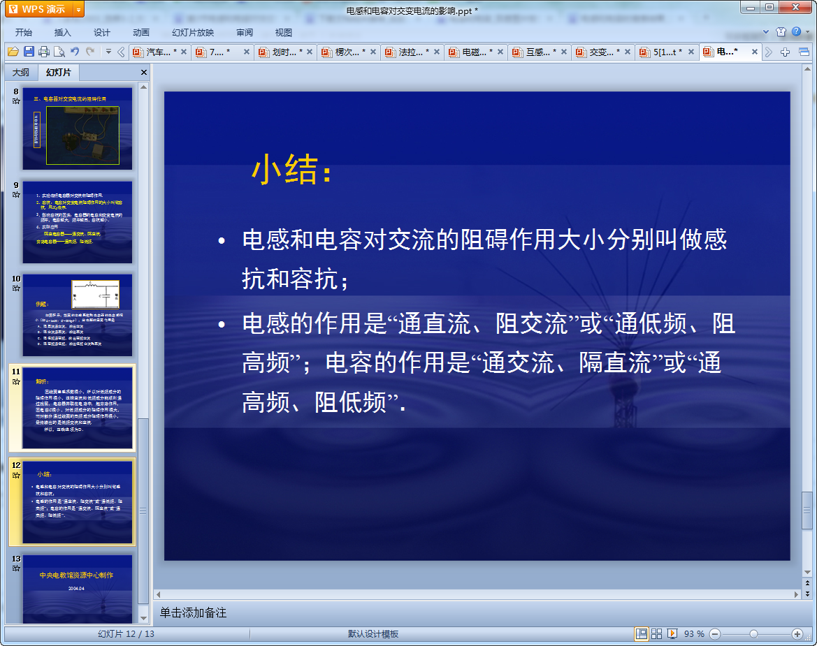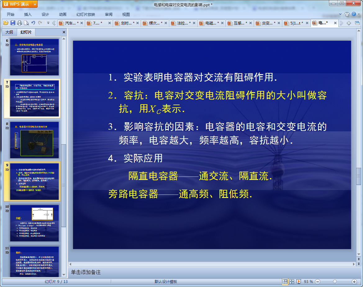 电感和电容对交变电流的影响教学课件内容介绍