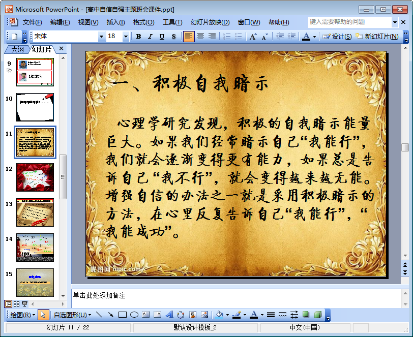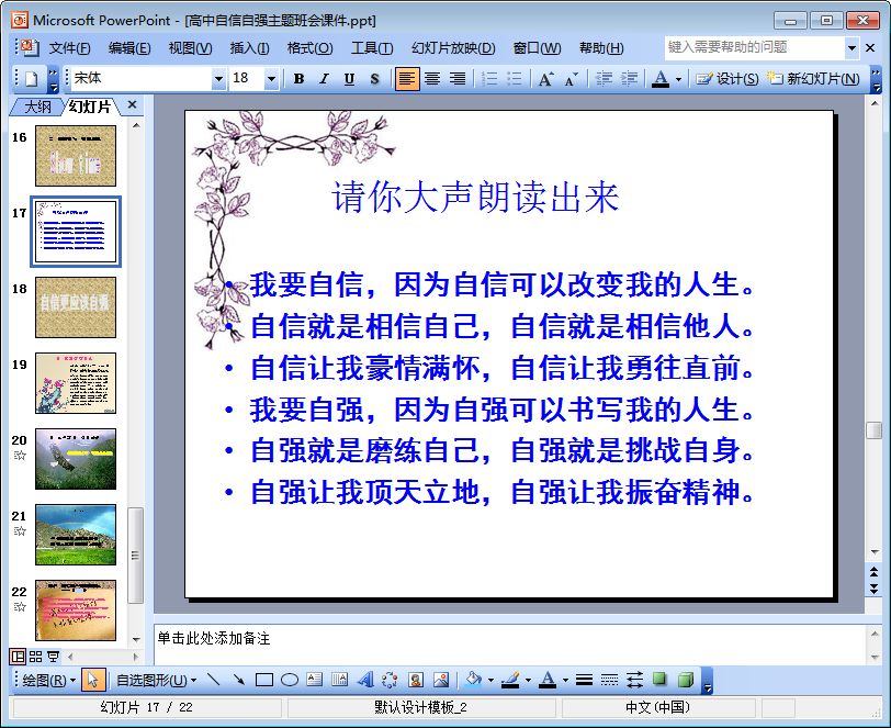 前面小编为大家整理带来了一份小学生自立自强主题班会课件,本节内容小编为大家整理带来的则是一份高中自信自强主题班会课件,想知道这两者之间除了适用年级不同之外,还有着怎样的区别吗?如果你的回答是肯定的,那就快来东坡下载将这两份ppt下载下来看看吧!
