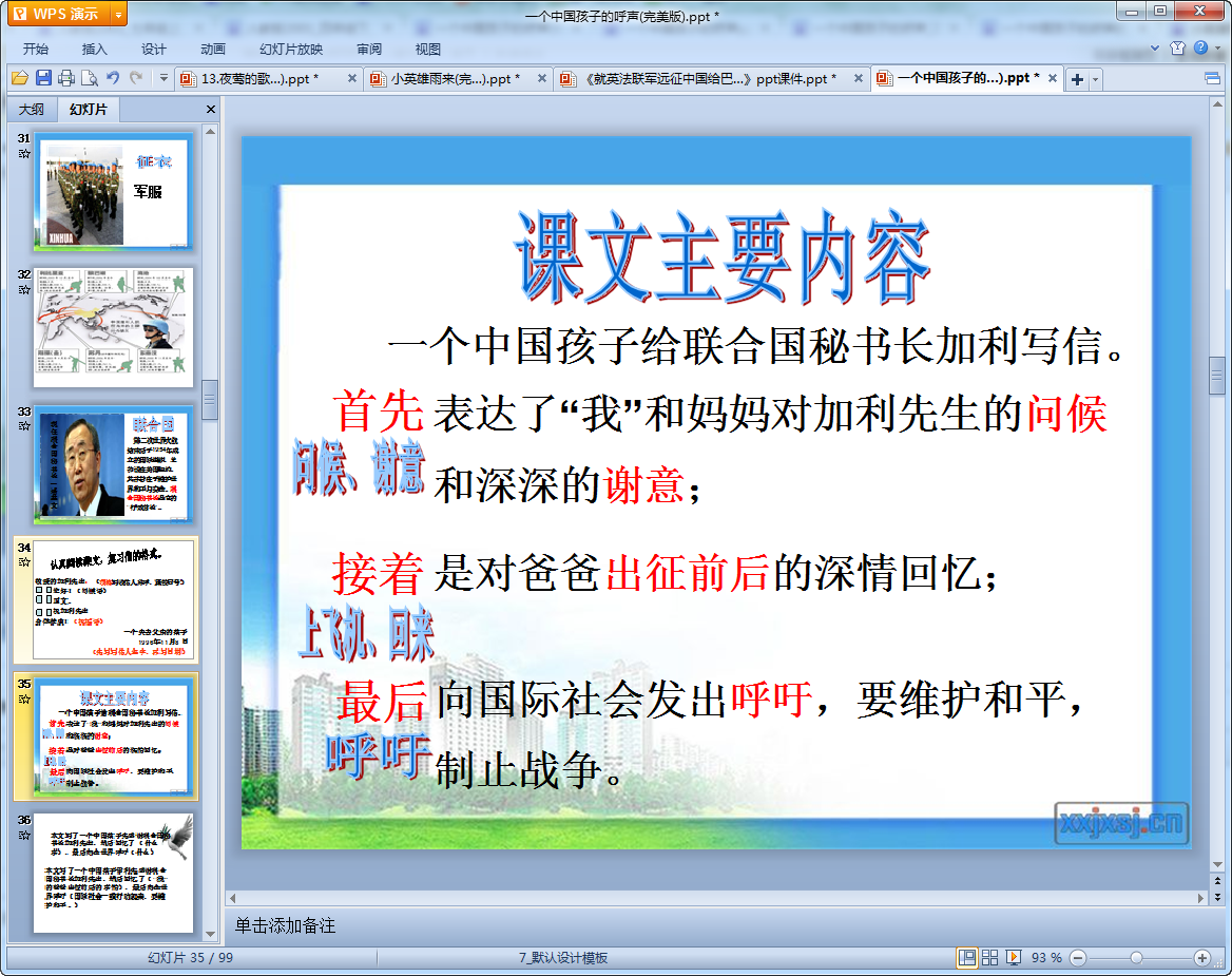 一个中国孩子的呼声教学课件ppt内容介绍