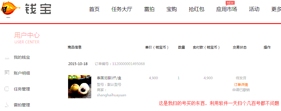 这是用扫到的号买的东西,利用本扫号软件一天扫几百个号都不是问题,轻轻松松!