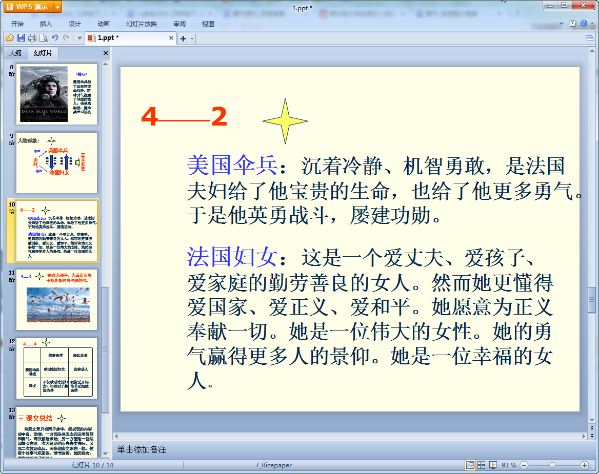 这是由东坡下载编辑整理的勇气教学课件ppt,该课件共有14页制作精细对课本上的内容介绍详细,讲述了法国妇女坚强、勇敢,富有智慧、具有正义感和美国伞兵身处险境,临危不慌、意志顽强的精神。有兴趣的朋友们可以来下载使用!