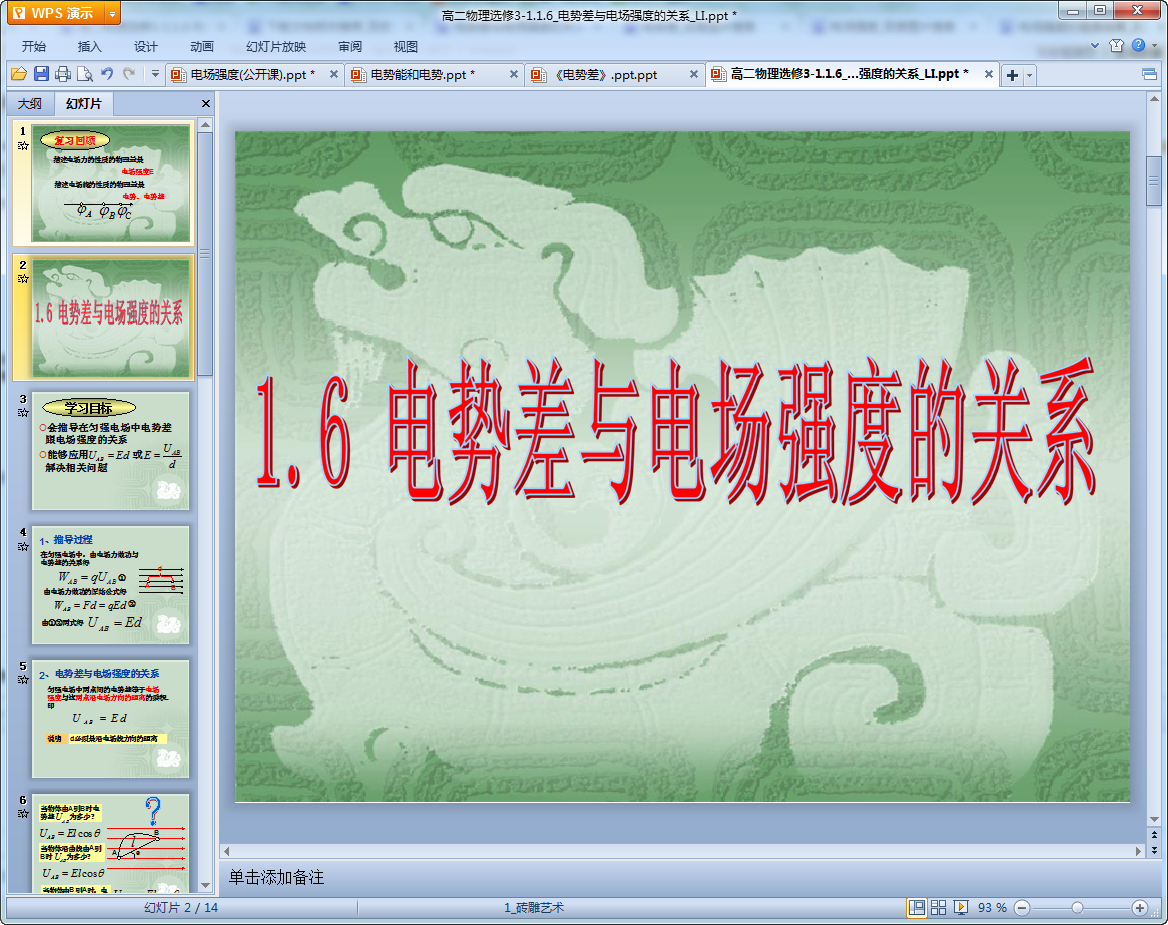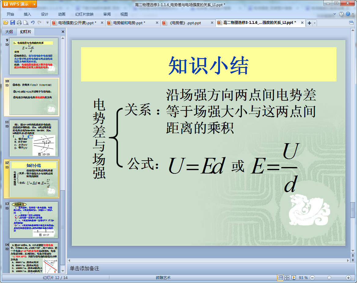 这是一篇高中物理中电势差与电场强度的关系教学课件,该课件共有14页制作精细,对课本上的重难点都归纳的十分清楚,有需要的朋友们可以来看看,我们为大家提供免费的下载!