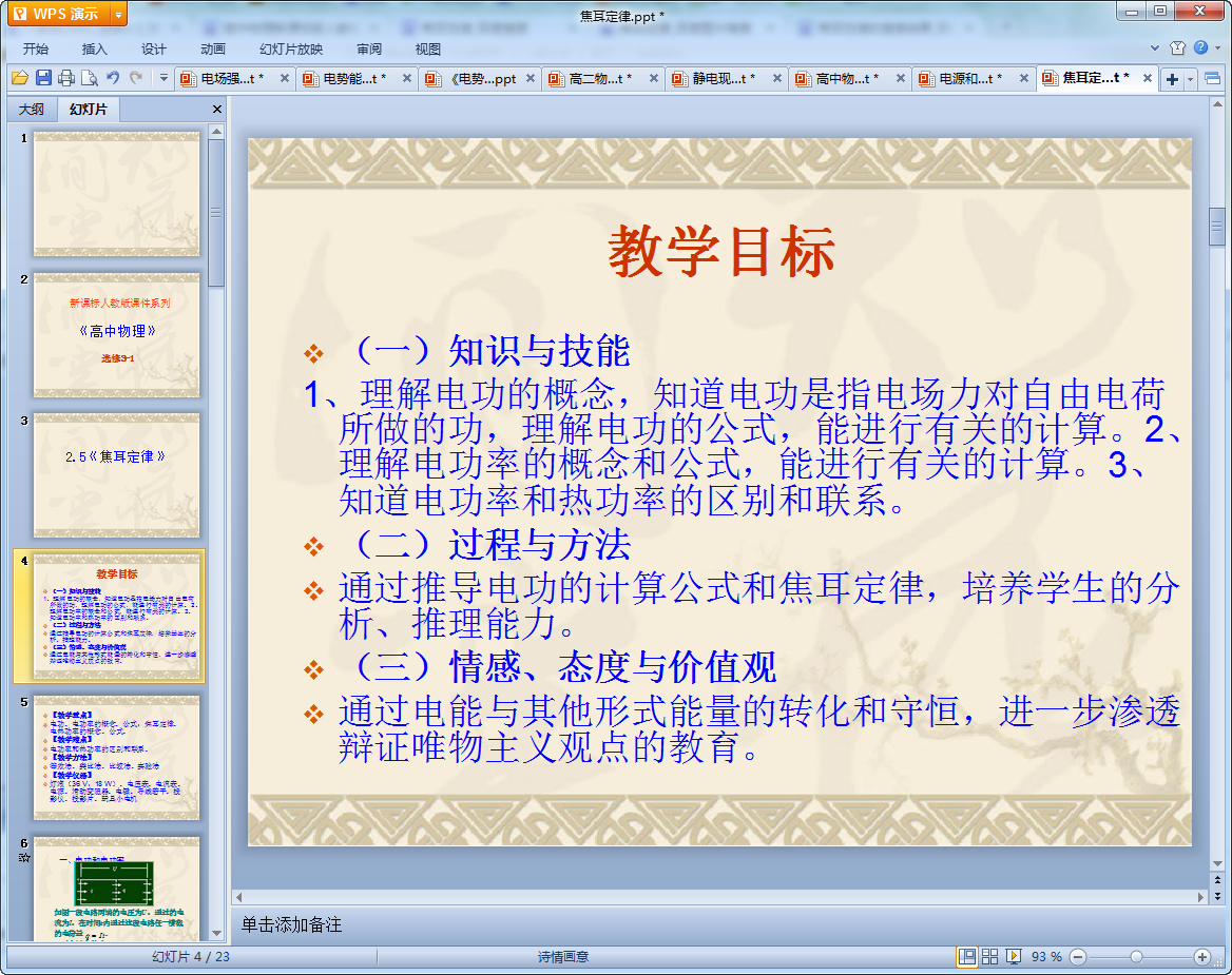 通过电能与其他形式能量的转化和守恒,进一步渗透辩证唯物主义观点的教育。