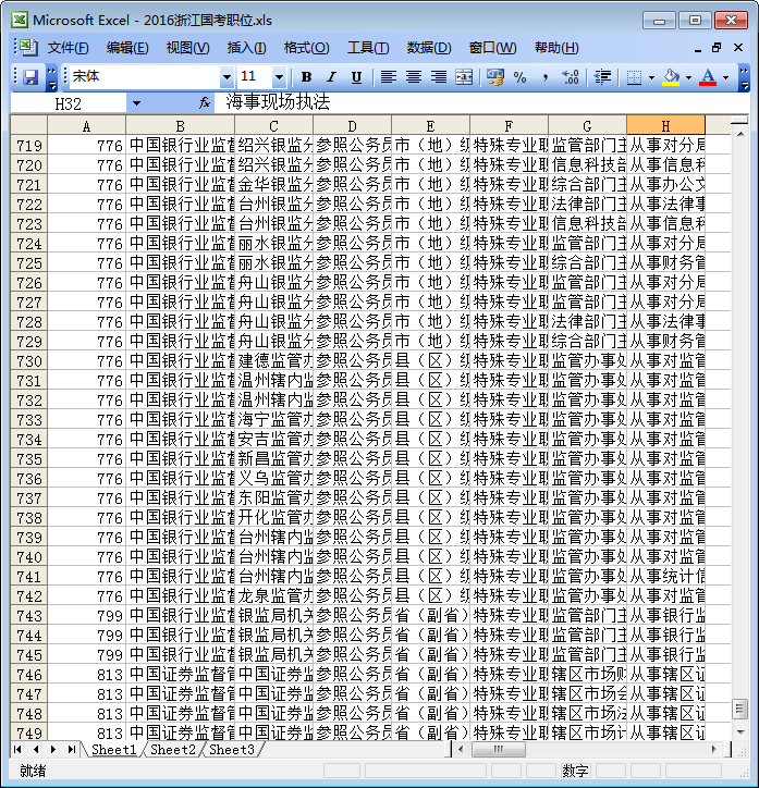 2016浙江省国考职位表内容截图