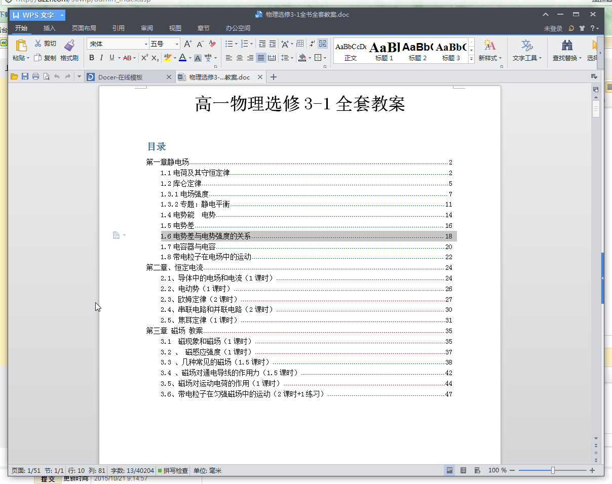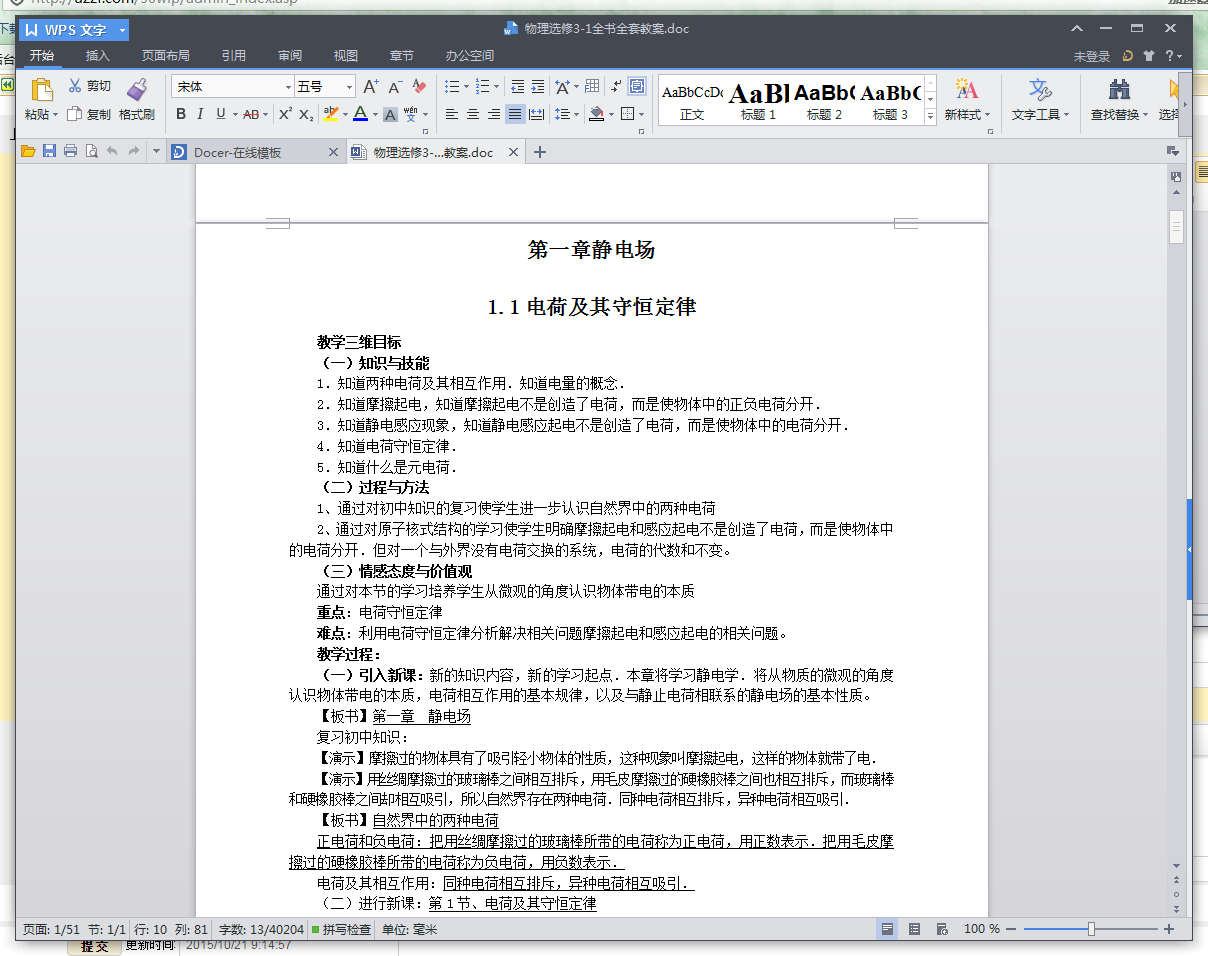 高中物理选修3-1全书全套教案预览