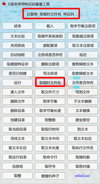 一些E语言特征码是经常要调用的,这里小编给大家分享E语言常用特征码查看工具,集合了一些会经常使用的E语言特征码,使用起来非常方便,大家可以免费下载使用。