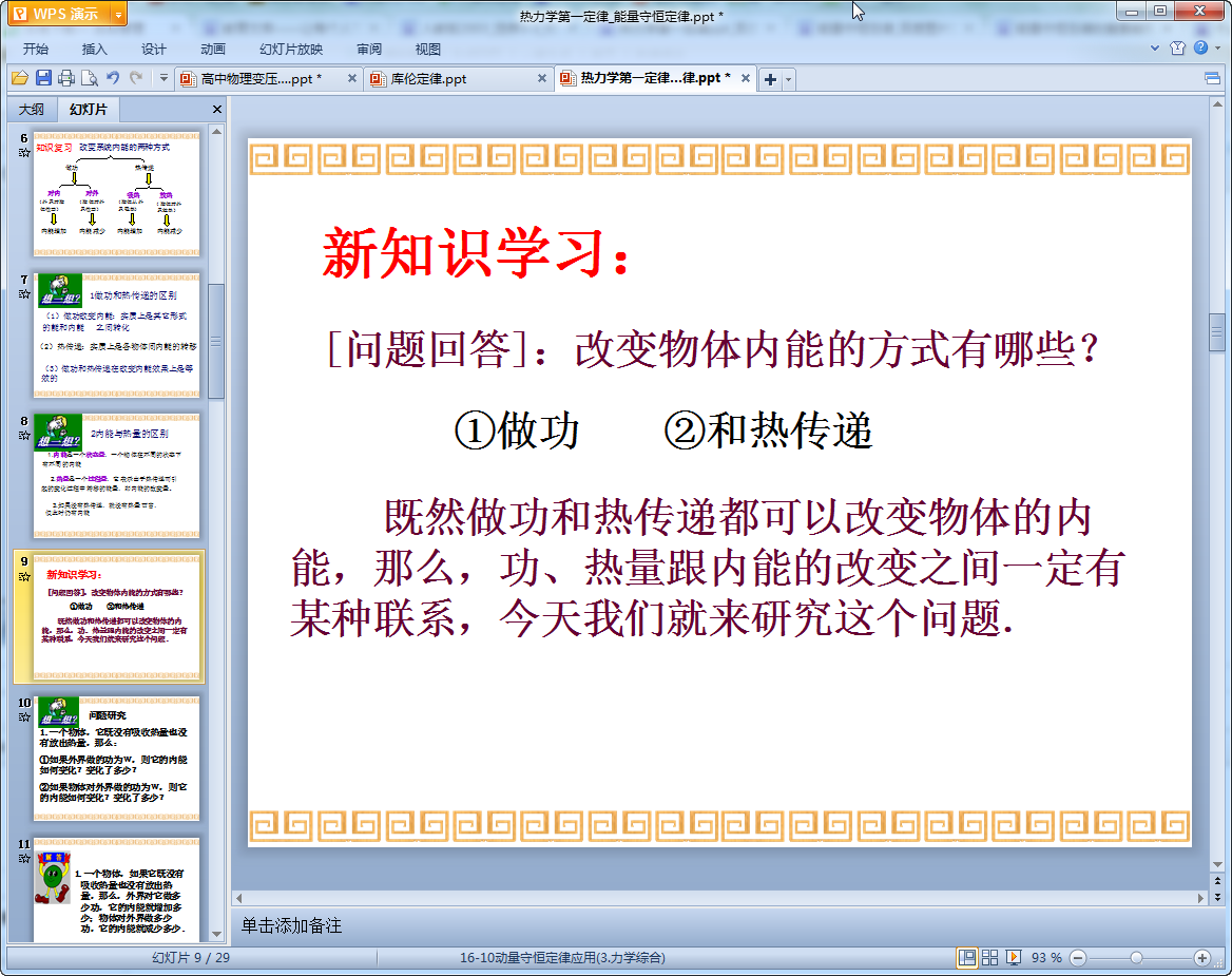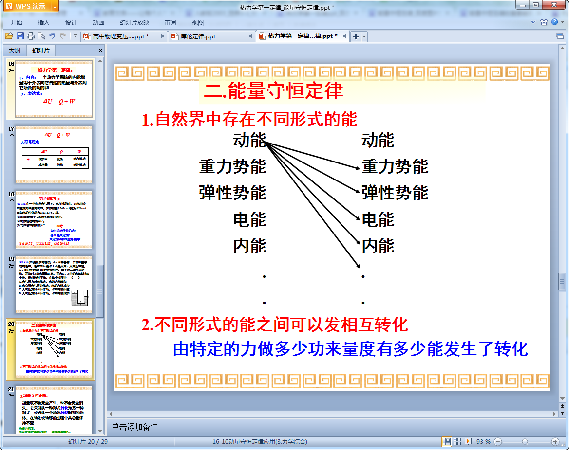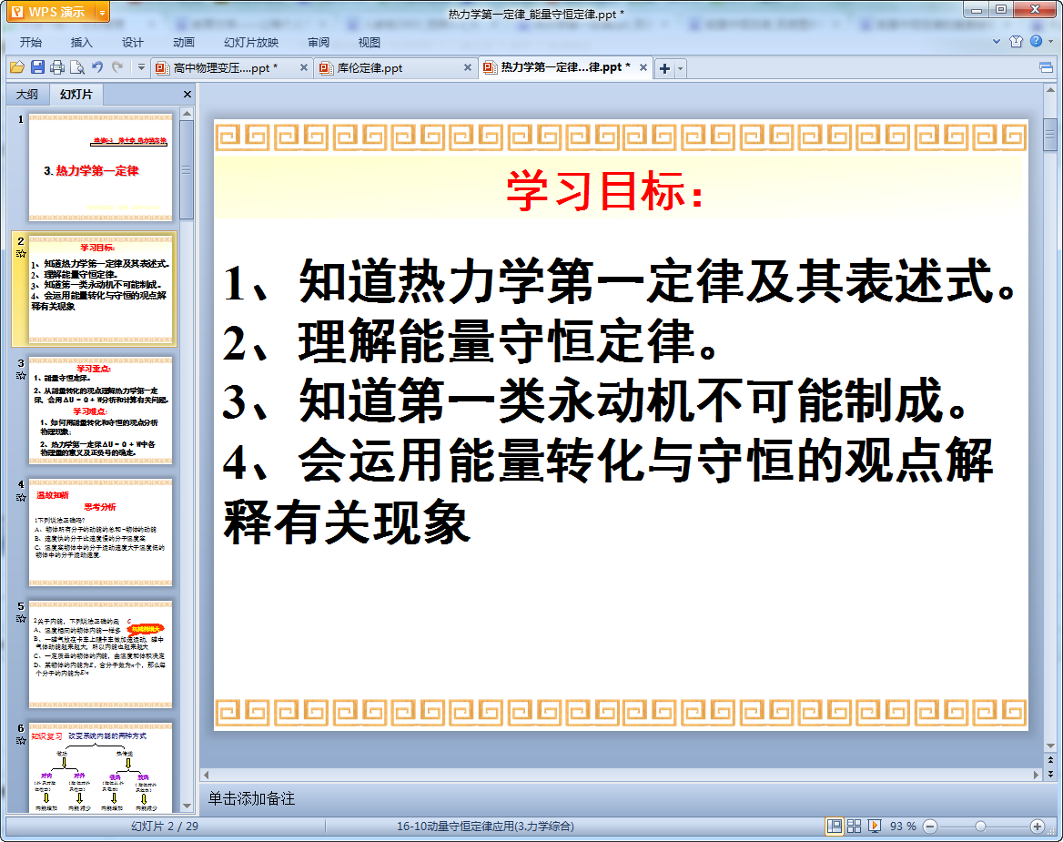 这是一篇高中物理教学课件热力学第一定律ppt,该课件共有29页精致精细,对课本上的内容归纳的也十分完善,非常不错的一篇教学课件有需要的老师们可以来看看,我们为大家提供免费的下载!
