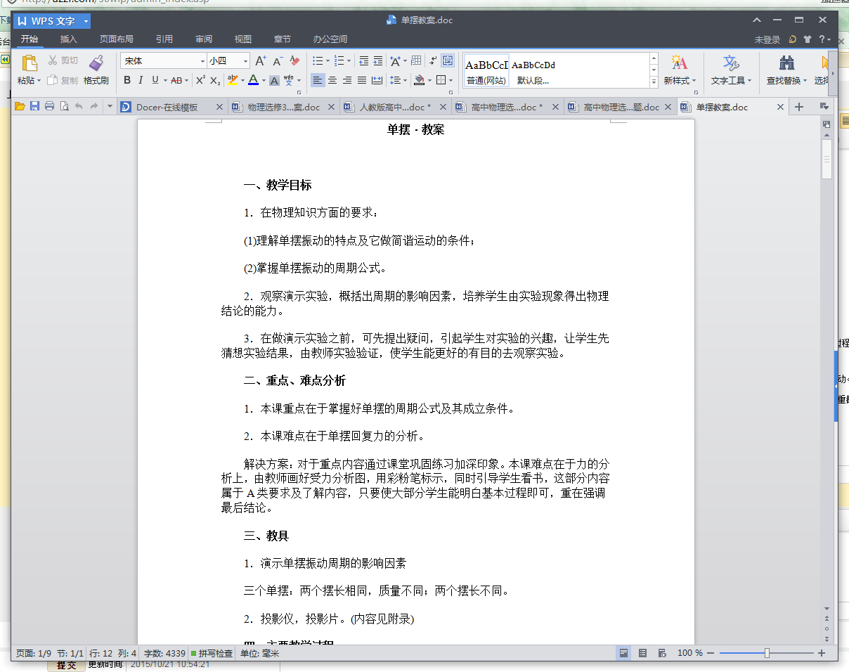 2.观察演示实验,概括出周期的影响因素,培养学生由实验现象得出物理结论的能力。