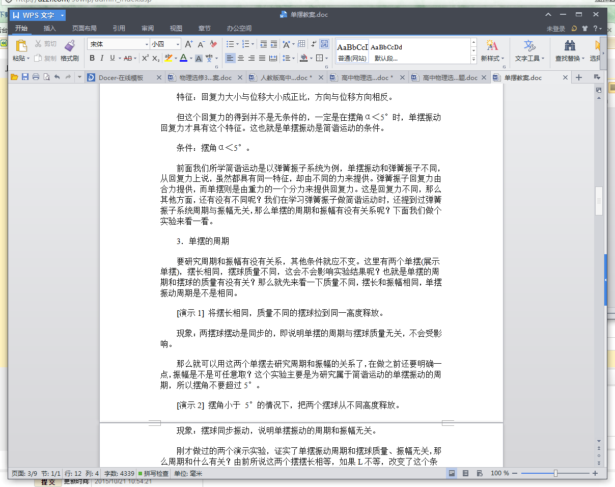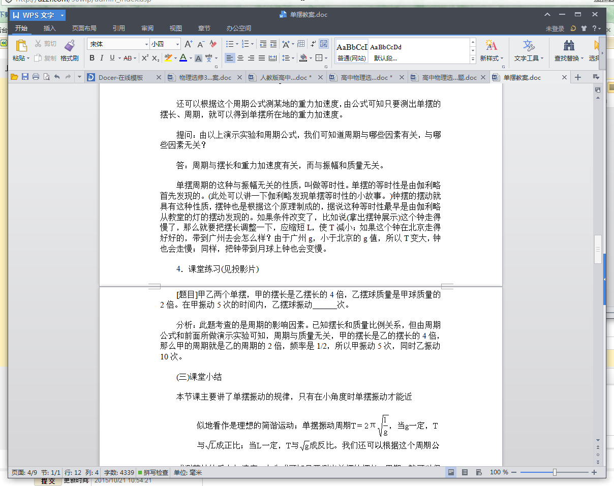 1.本课重点在于掌握好单摆的周期公式及其成立条件。