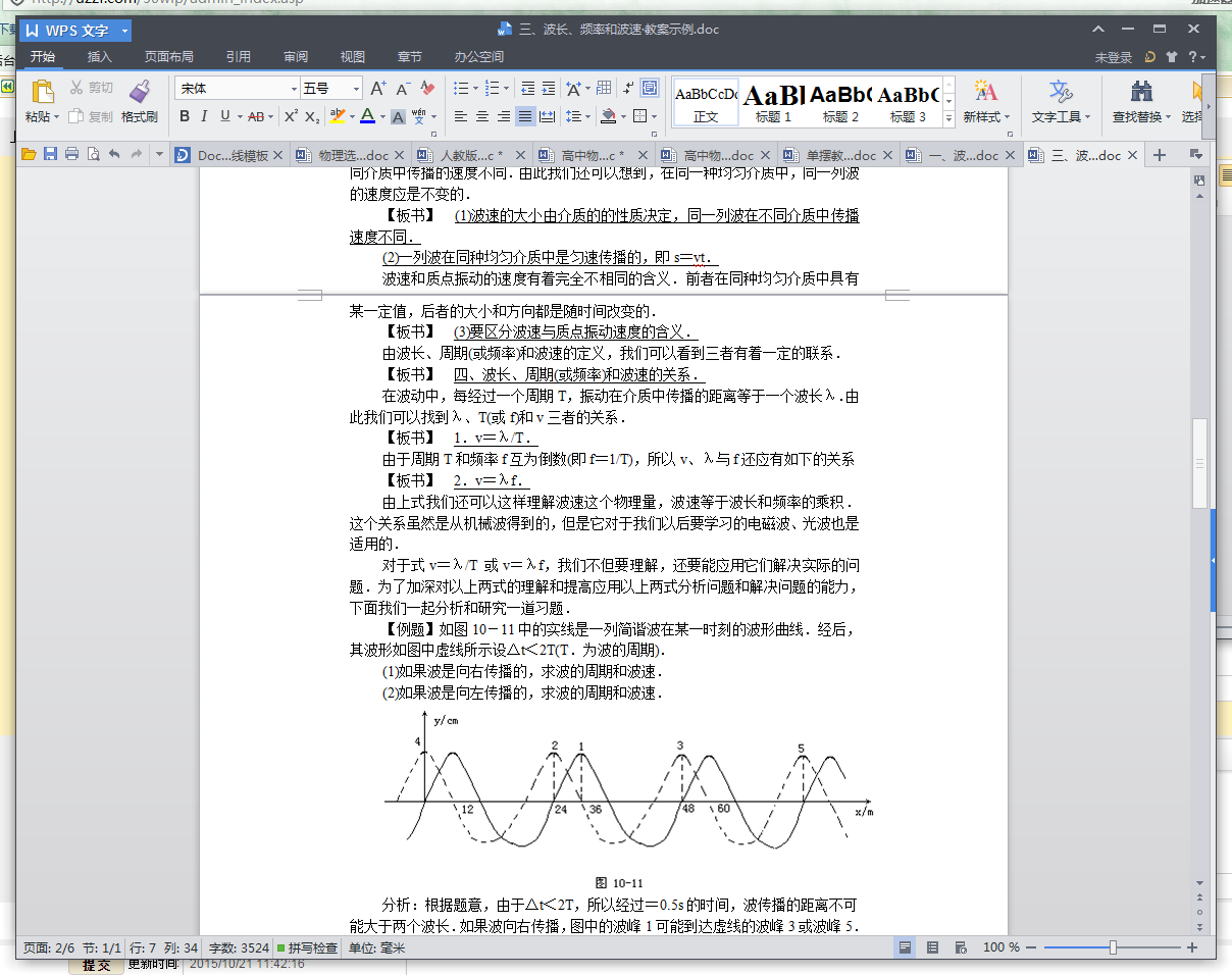 5.由式v=λ/T和s=vt结合波的图象分析实际问题时,有两种方法.一是本教案中【例题】的方法,二是教材中第10页【例题】的方法,两种方法应使学生在理解的基础上掌握好.