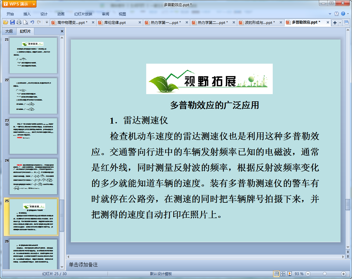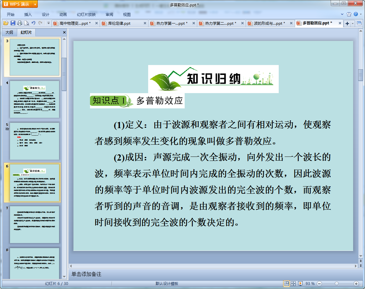这篇多普勒效应教学课件ppt制作十分精细画面简单不花哨,对学生们有吸引力,有兴趣的老师们可以来看看,我们东坡为大家提供免费的下载!