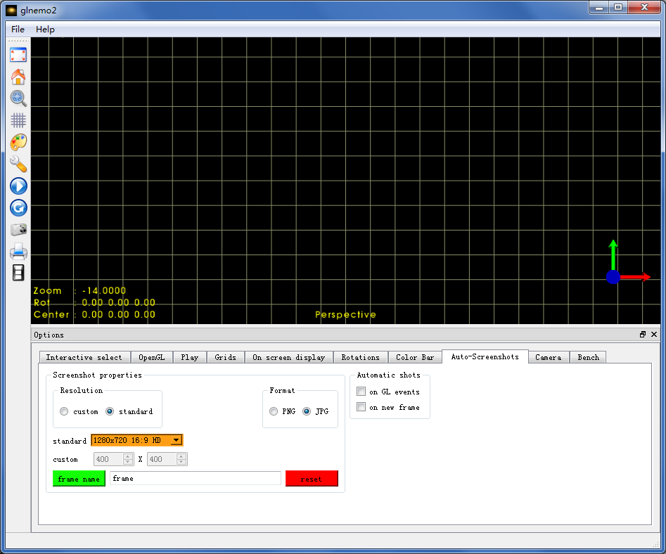 一旦启动,glnemo2显示粒子,和不同的动作用鼠标或键盘执行不同的动作。