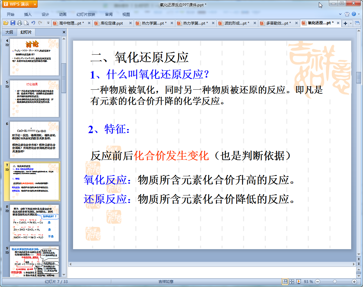 氧化还原反应教学课件内容介绍