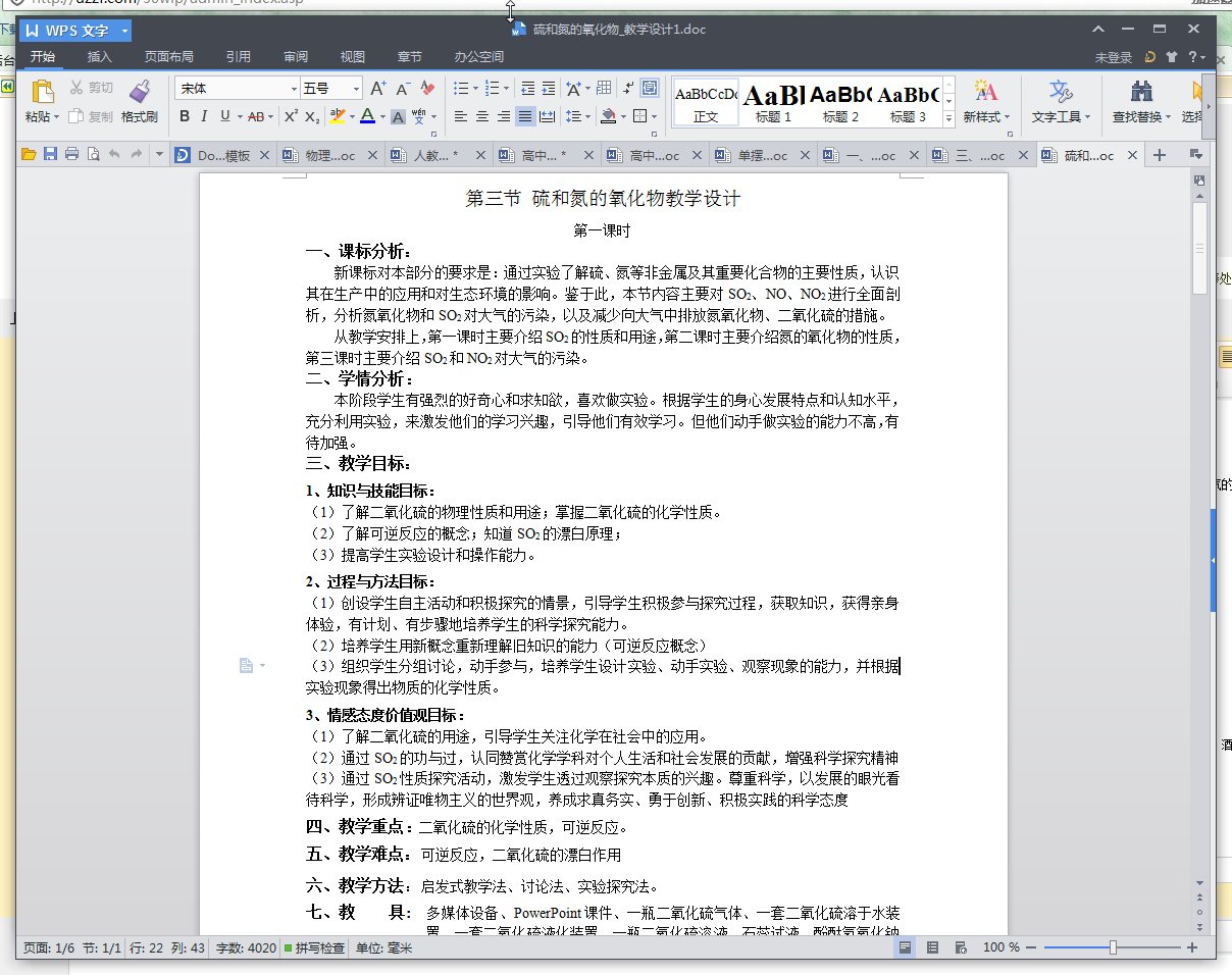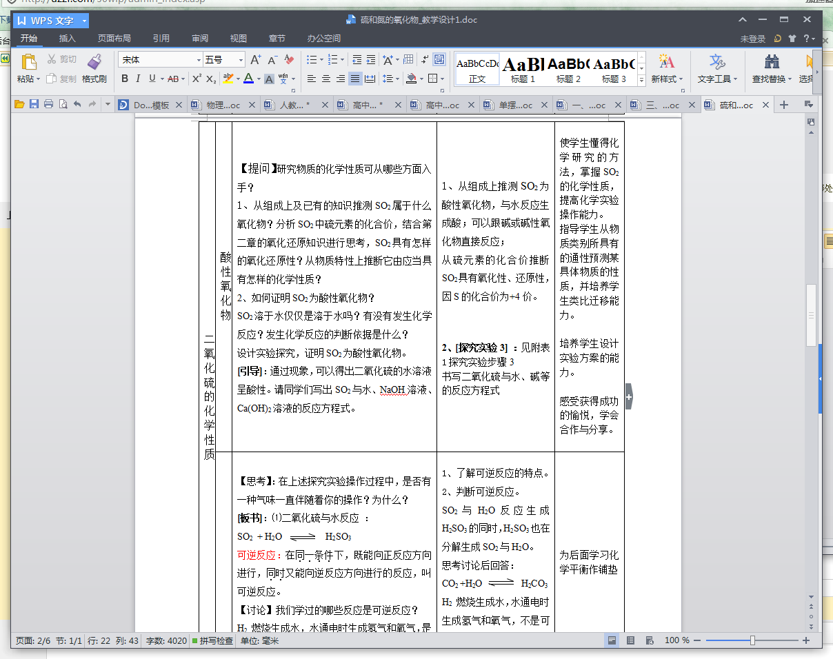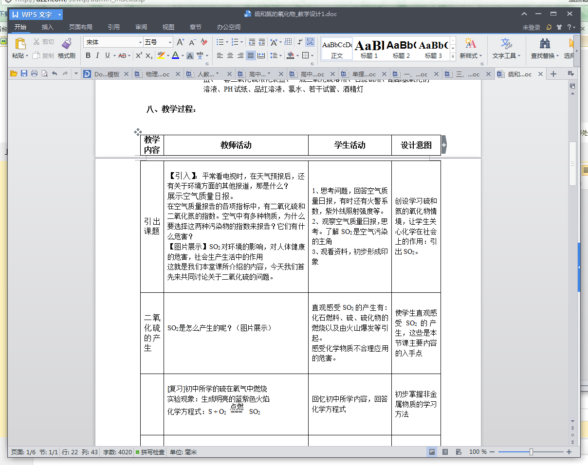 硫和氮的氧化物教学设计范文预览