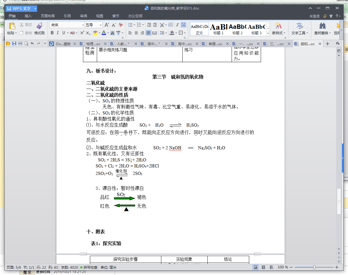 硫和氮的氧化物教学设计范文内容节选