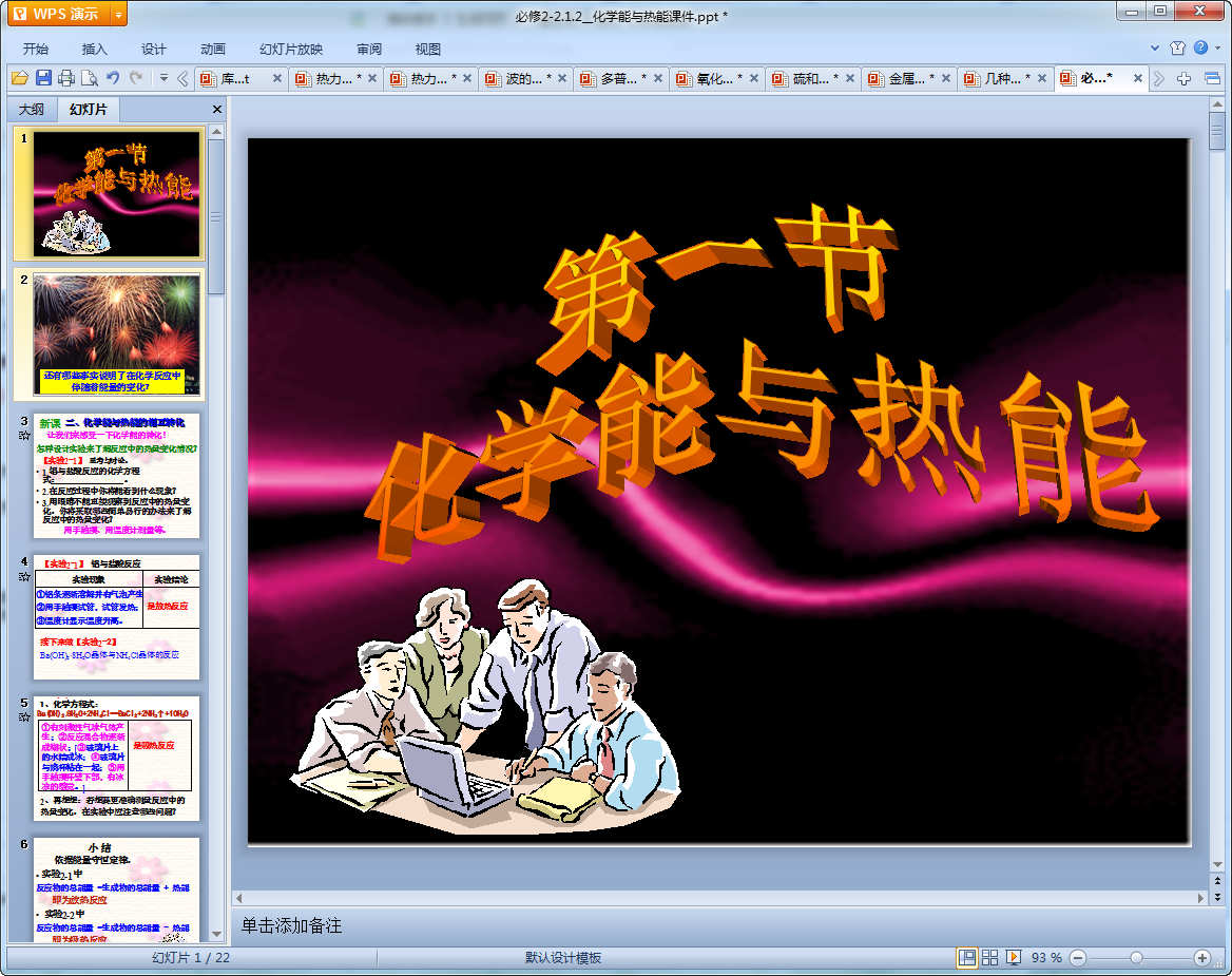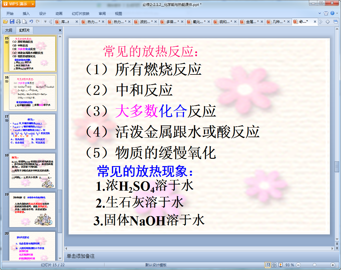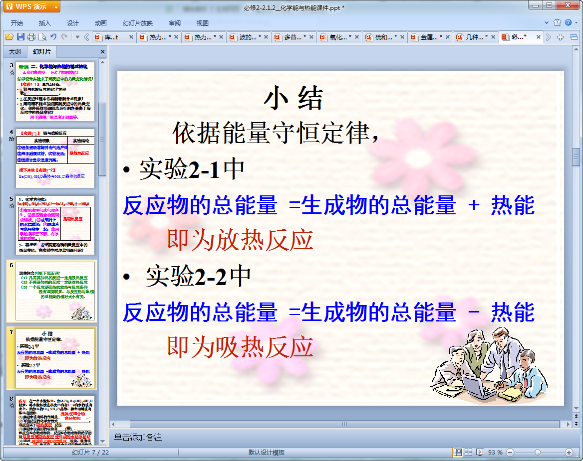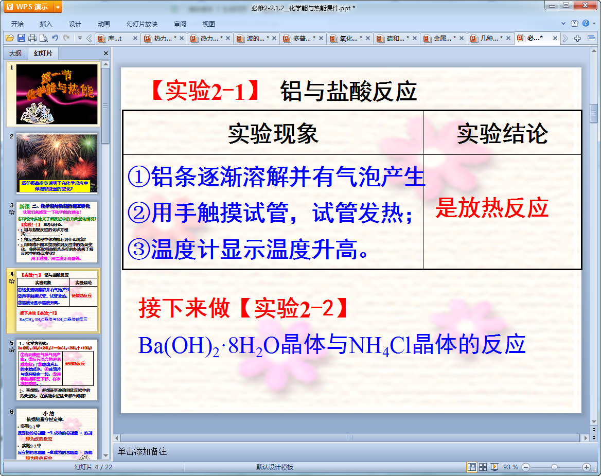 这是一篇化学课本中的化学能与热能教学课件ppt,该课件共有22页内容丰富,对课本中知识点归纳清楚,深受老师们的喜爱有兴趣的朋友们可以来下载使用!
