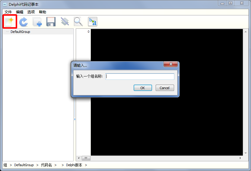 下载解压后打开Delphi代码记事本,新建代码组