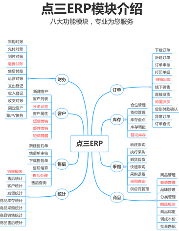 系统包含商品、库存、采购、订单、客户、售后、财务、统计8大实用功能模块。SaaS化轻应用,云服务,高灵活度,低使用成本,更适合中小卖家。免费试用,免费培训。