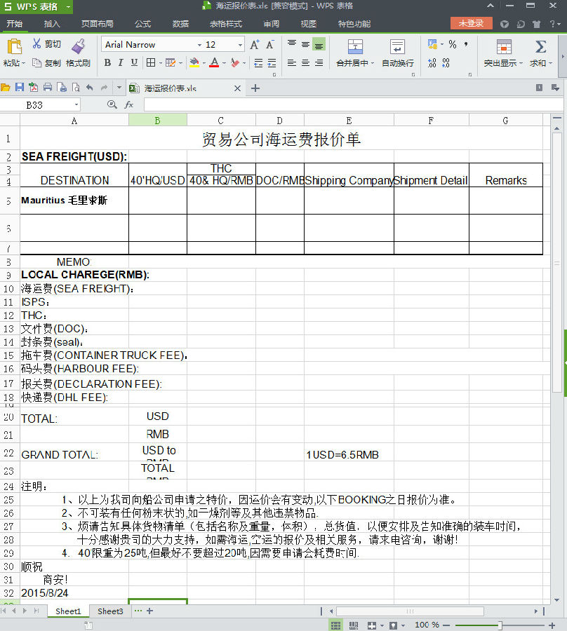 大家知道海运是什么吗,通俗点来说,就是海上运输。今天东坡小编为大家带来的一份海运报价单模板,大家可以做一下参考哟。