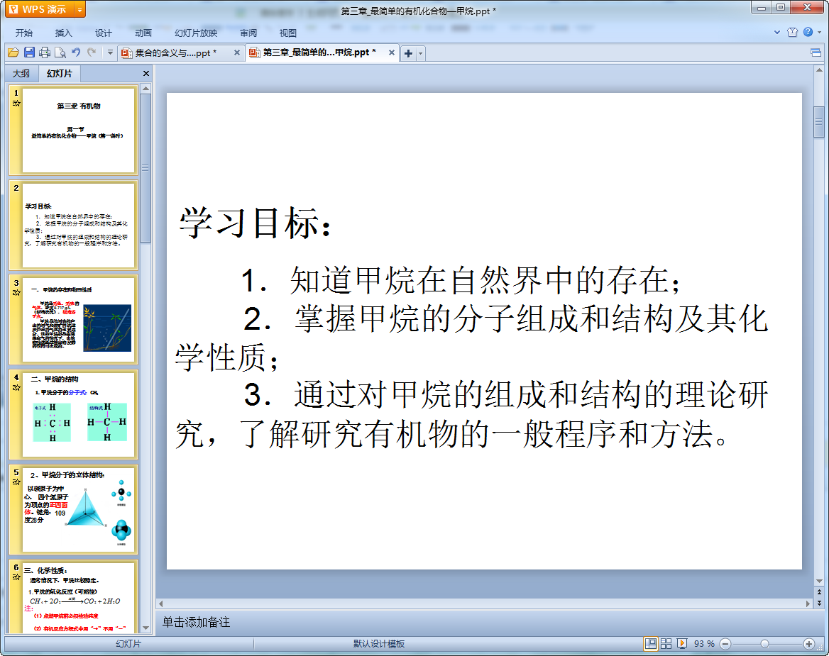 3.通过对甲烷的组成和结构的理论研究,了解研究有机物的一般程序和方法。