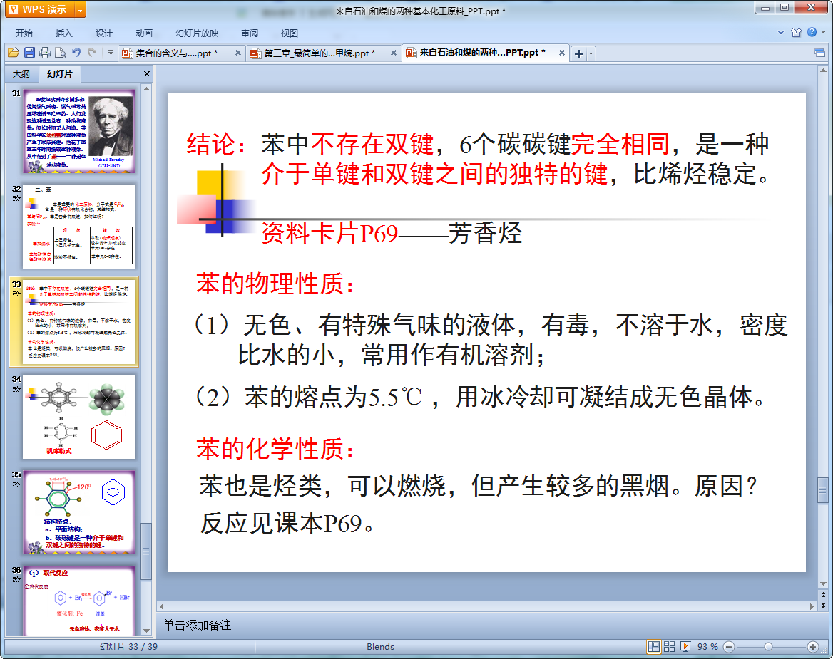 3. 苯兼有饱和烃和不饱和烃的性质,但没有饱和烃稳定,比不饱和烃稳定.