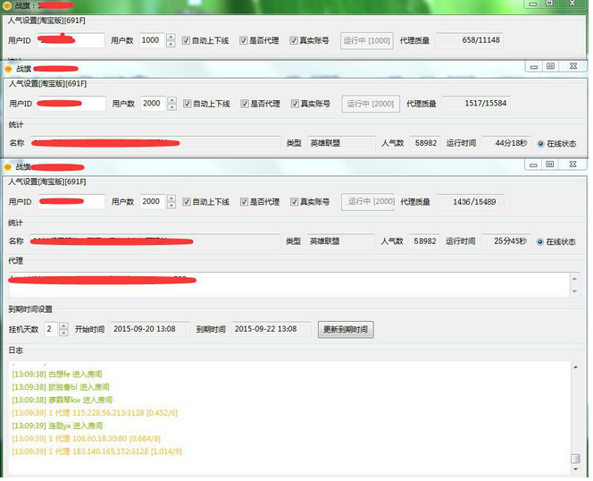 使用代理人气不稳定是很正常的,如果代理质量好,程序会自动把人气补上。如果运行中的数量很低,证明代理不行,需要更换代理源。