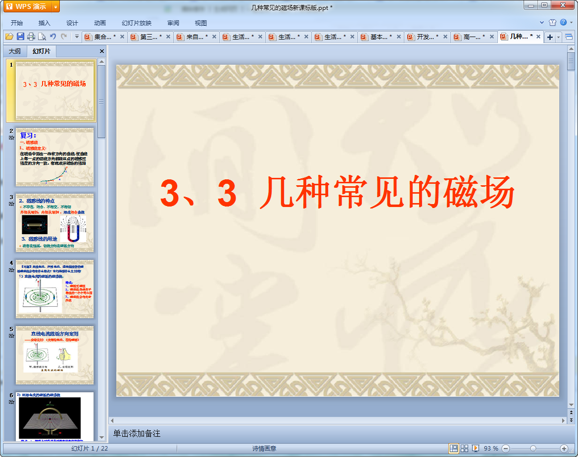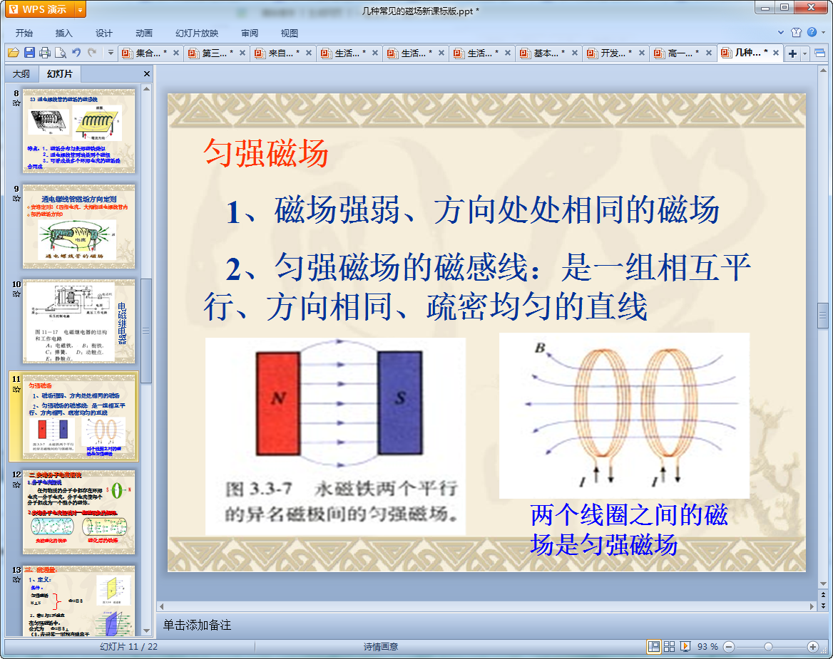 这是一篇高中物理中的几种常见的磁场教学课件ppt,该课件共有22页制作精细对课本中的知识点归纳十分完善,十分不错的教学课件有需要的朋友们可以来看看,我们东坡为大家提供免费的下载!