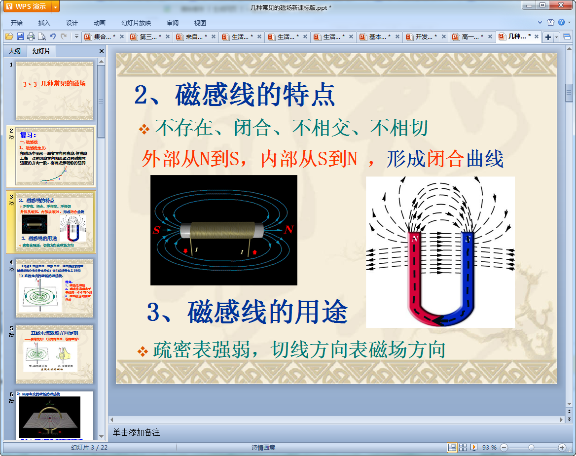 在磁场中画出一些有方向的曲线,使曲线上每一点的切线方向都跟这点的磁感应强度的方向一致。密疏表示磁场的强弱