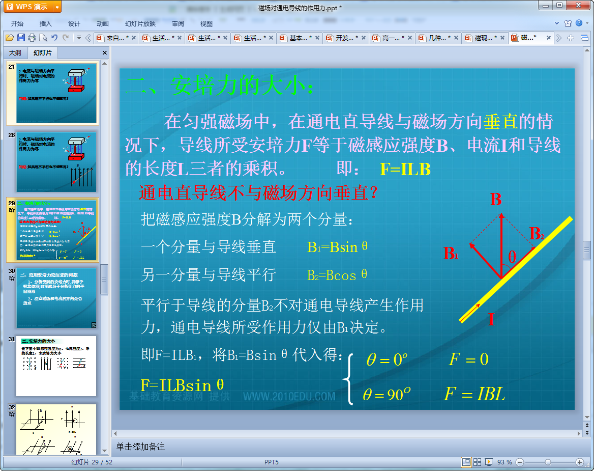这是由东陂下载编辑整理的磁场对通电导线的作用力教学课件,该课件共有52页内容丰富制作精细,对课本上的知识点讲解的十分完善清楚,能让学生们更快的理解知识,需要这篇这篇课件的老师们不要选择了,快来下载使用吧!