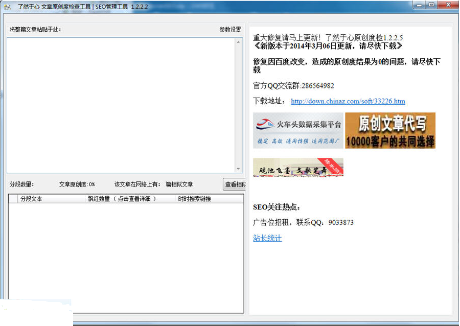 了然文章原创度检查工具 是一款非常实用的文章原创度检查。它可以帮助SEO管理者,检查文章原创度。十分强大。有需要的可以来东坡下载使用!