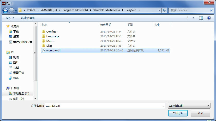 1. 安装 womble_easysub.exe