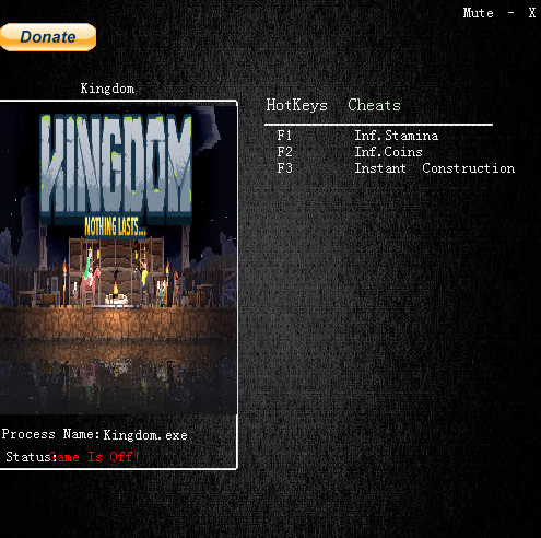 王国修改器三项1.0由MrAntiFun基于游戏1.0版本制作,使用后可获得无限体力、无限金、快速建设三项功能,需要的小伙伴自行下载。