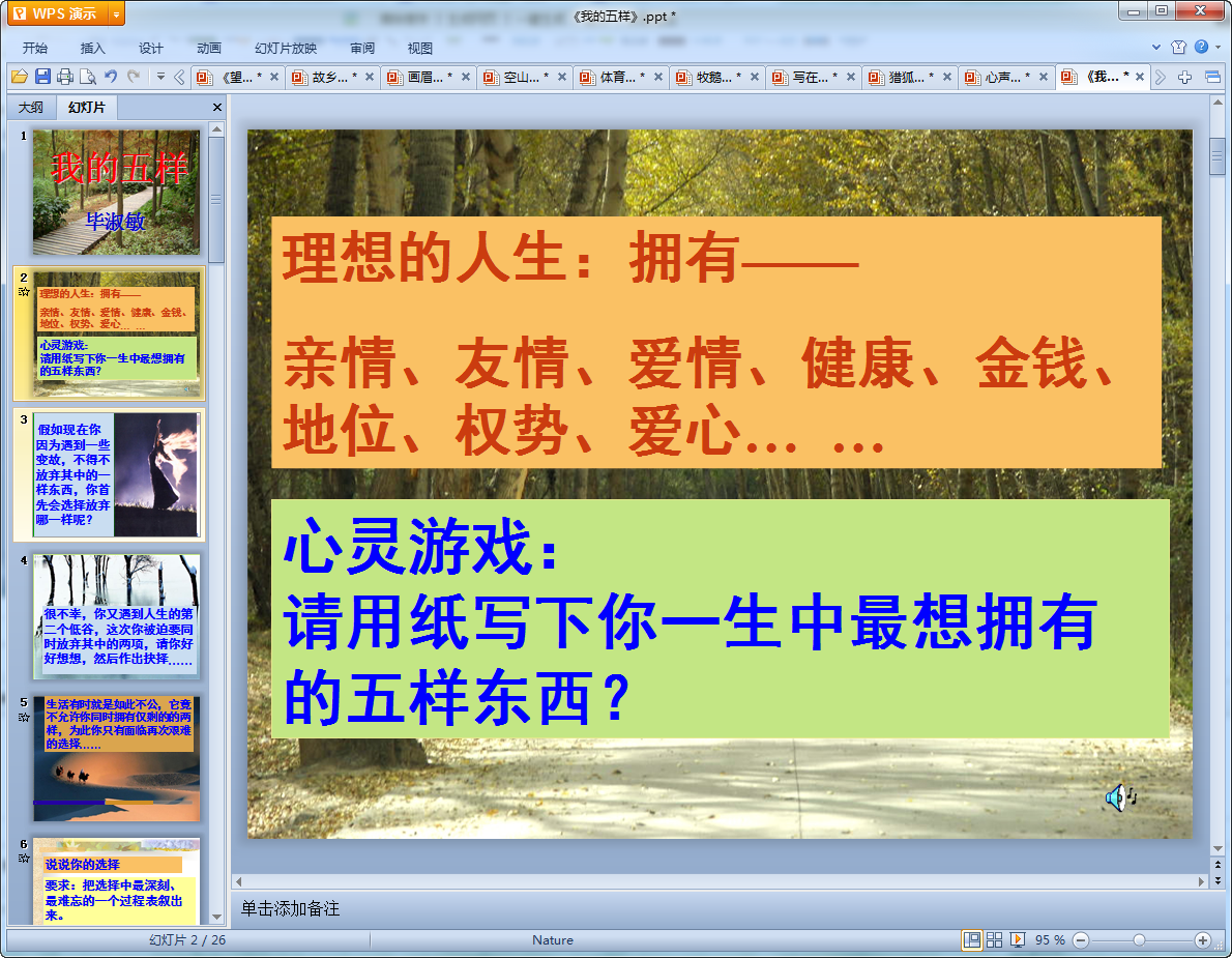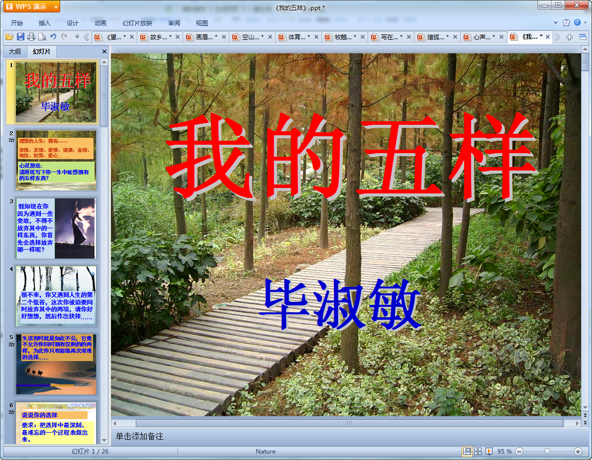这是由东坡下载站编辑整理的我的五样教学课件ppt,该课件共有26页内容丰富,对课本中的知识点归纳的比较详细,比较不错的教学ppt,有兴趣的老师们可以来看看,我们为大家提供了免费的下载!