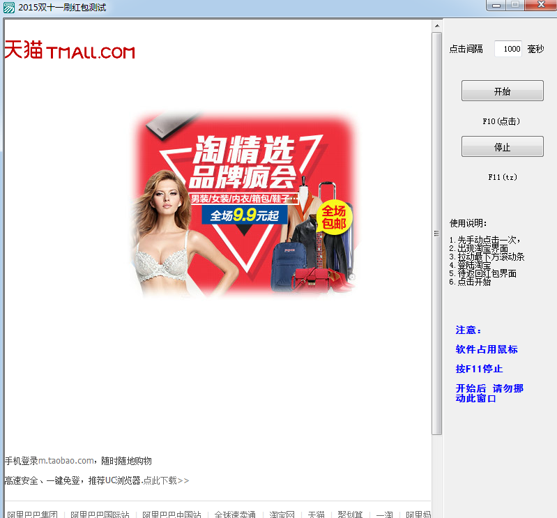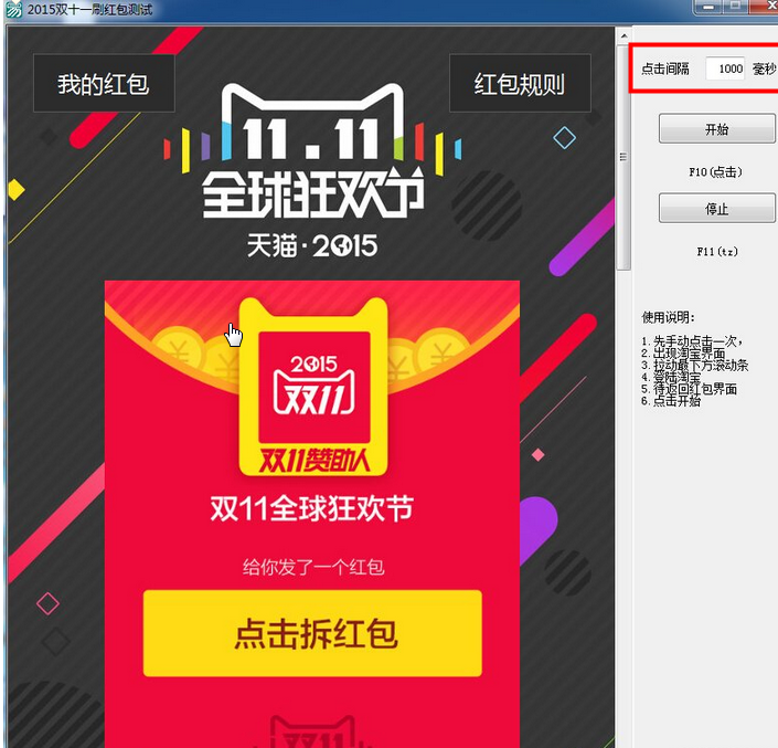 2015双十一刷红包软件发布出来是为了今天打算的,因为等会零点的时候,会有大量的红包出现,最少的也有几块钱的,如果你实在不想错过的,这个软件就能帮助你准确的抢到每个红包,而且还能快点拆红包!