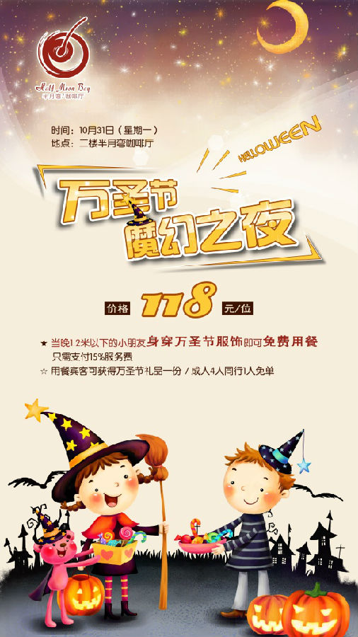 一、活动时间:10月31日晚8点至31日凌晨2点