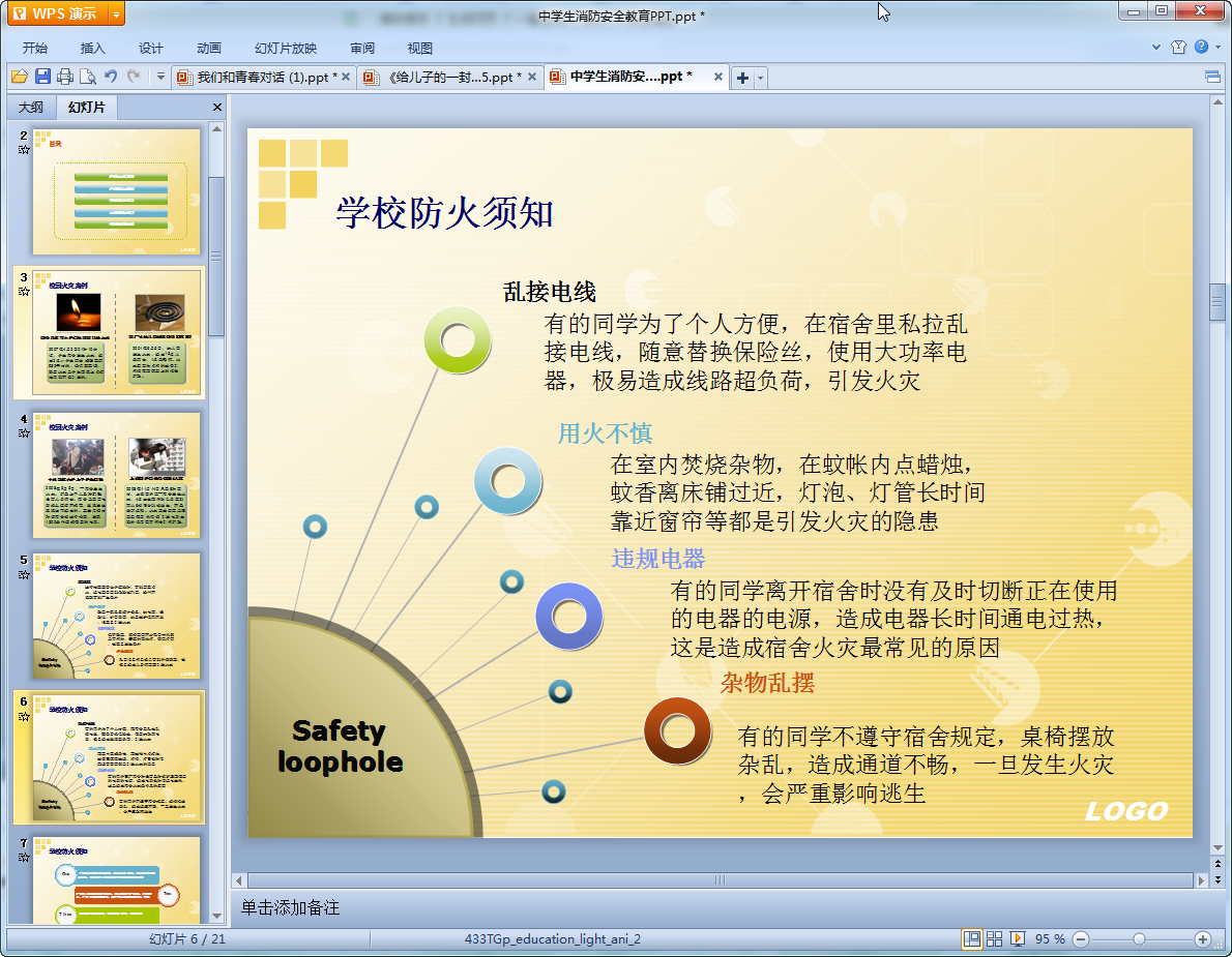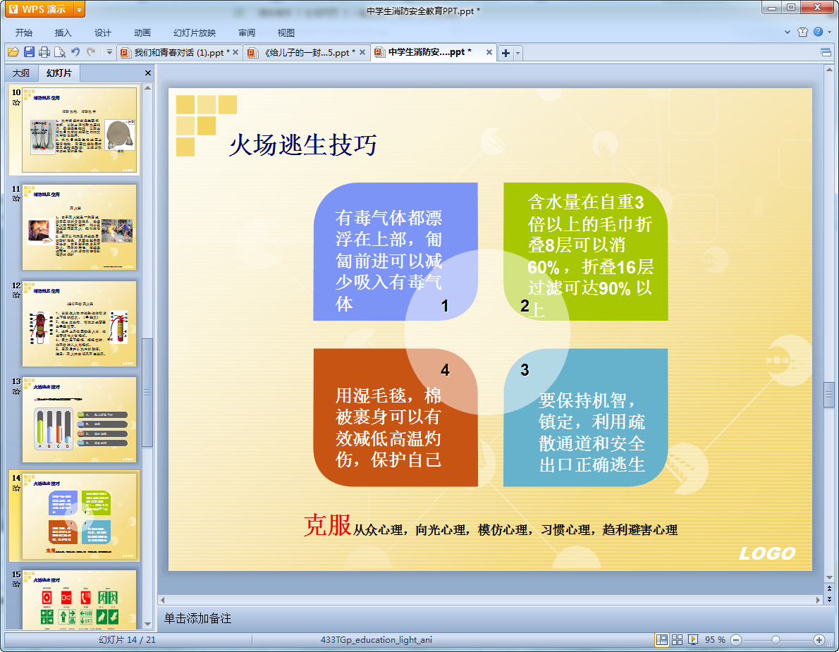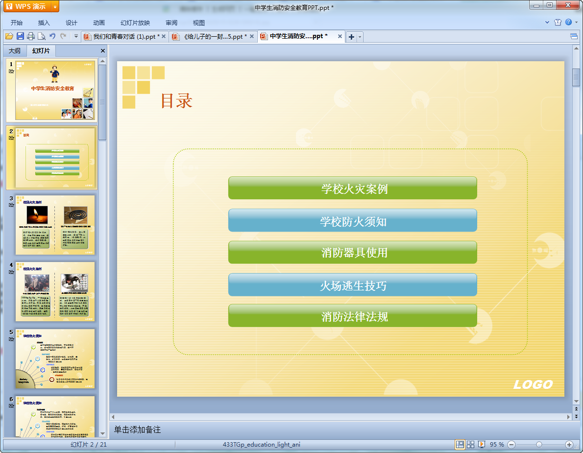 这是一篇关于消防教育的教学课件,该课件直接十分精美对学生们有吸引力能引起学生们的注意,以达到最好的教学目的,提高学生们的消防意识,有需要的老师们可以来这边下载这篇中学生消防安全教育教学课件,我们东坡为大家提供了免费的下载地址!