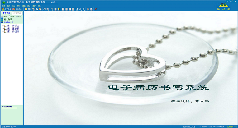 本软件仿WORD界面书写,仿病历纸张页面 ,一般信息自动生成,傻瓜操作。 既往病历检索简单快速,病人列表可用诊断名列出,使查找相似病例简单快捷。亦可使用搜索功能,包括诊断、住院号、姓名,入出院日期等搜索方式。病历模板可以根据医院需求自定义,自定义模板功能强大(也可联系作者为你院免费制作模板)。附带大量医学资料、工具,比如内外妇儿示例病历、相关医学常识,外科手术记录,中医方剂等。加入医嘱模块,本软件最大的特点就是所有均仿病历纸张书写,医嘱模块亦不例外。只要将鼠标点上去,在医嘱助手快速检索栏中输入药品第一字母,就可将药品开具出。不用担心药品常用剂量被忘记。时间,签名自动生成。加入输液卡。方便护理人员抄输液卡之烦恼。本程序还附带自定义模板,模板数量不受限制,可以根据你院情况自己定义模板。模板编辑功能非常强大。模板页面格式分为A4格式与16K格式两种,用户可以根据医院规定自行选择页面大小。根据各个医院页眉抬头项目不一致情况,将页面抬头在姓名、科室、病室、床号、住院号五项中任意自由选择。