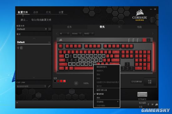 海盗船 STRAFE驱动采用与 RGB 系列一样的Corsair Utility Engine (CUE) ,因此拥有全键定制、背光定制等强大的功能属性,右侧键盘图可方便地对任意按键编程,绑定新的动作和创建任何按键组合。