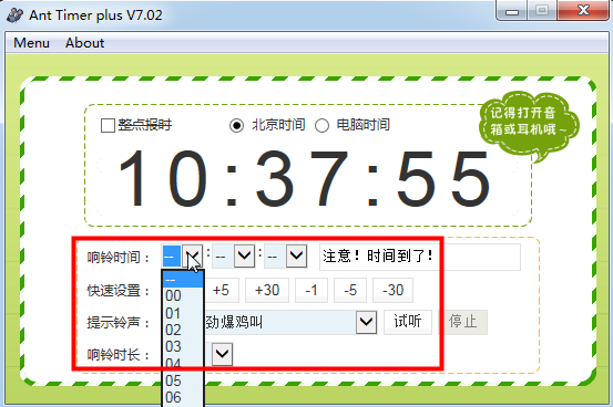 提醒小闹钟(电脑闹钟)1.0 绿色免费版