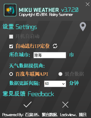 Miku Weather是一款非常不错的天气预报软件。界面也是非常之萌。相当的使用。满足你对天气情况的一切需求。有需要的可以来东坡下载使用!
