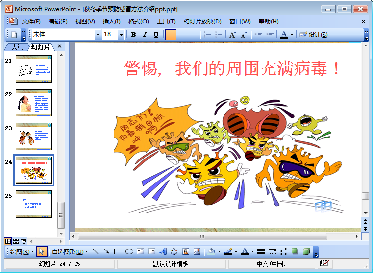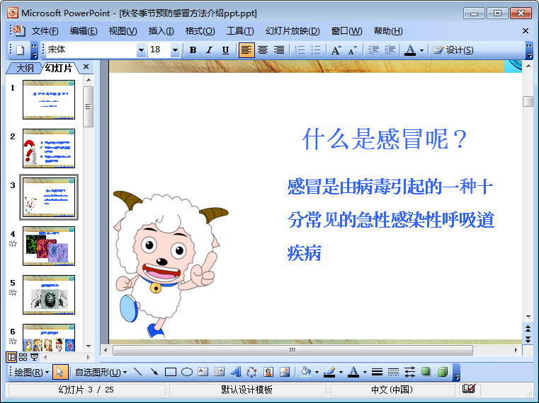尽管我们不能“制服”感冒,但我们完全可以预防它,那么预防感冒的方法到底有哪些呢?小编为大家精选整理带来的这份秋冬季节预防感冒知识讲座ppt(以下简称为预防感冒ppt)就对这一问题做了十分全面的介绍,如果你需要掌握一些预防感冒小常识或是方法,那么该预防感冒ppt将会是你一个不错的选择哦!