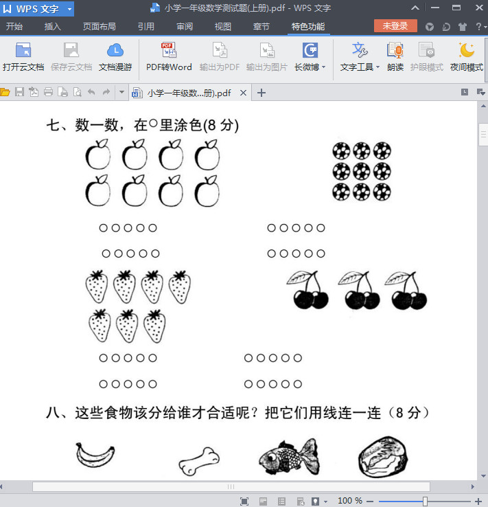 小学一年级数学练习题上册内容摘录