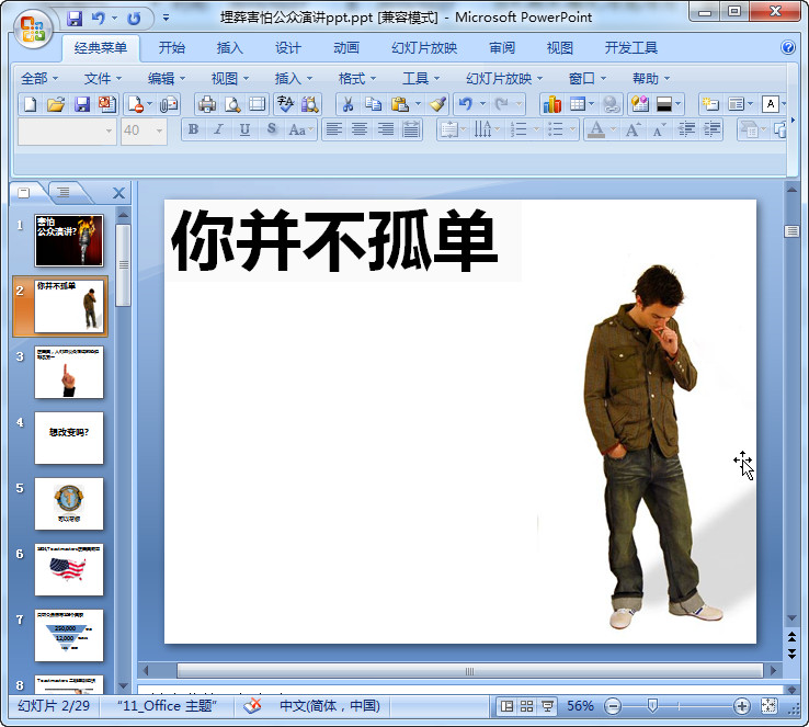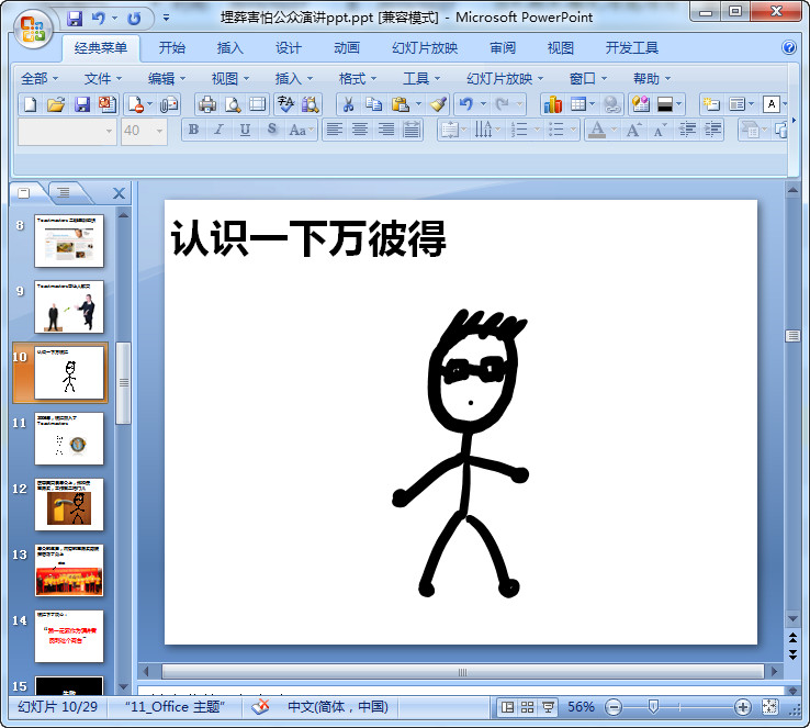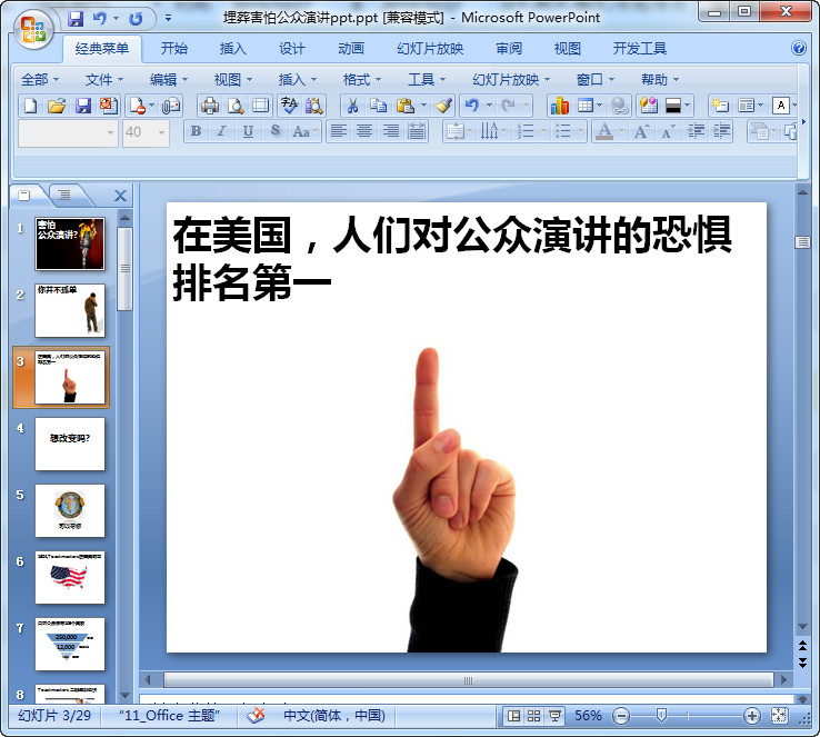 公众演讲,对于我们来说,本身就是一项挑战,让我们能够很好地战胜恐惧,完美地成为一名自信的人。这份埋葬害怕公众演讲ppt,利用一个名人的故事来讲述了如何战胜害怕。欢迎有兴趣的朋友前来东坡下载使用。