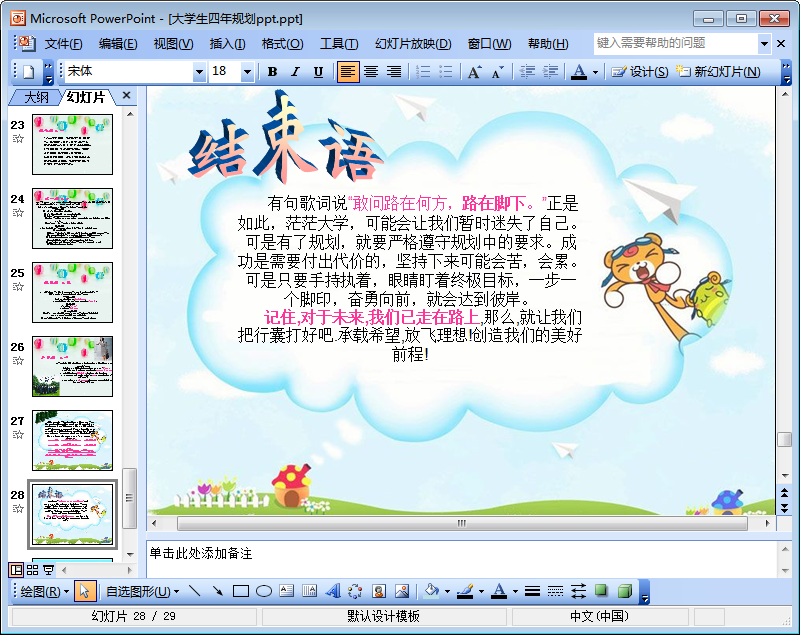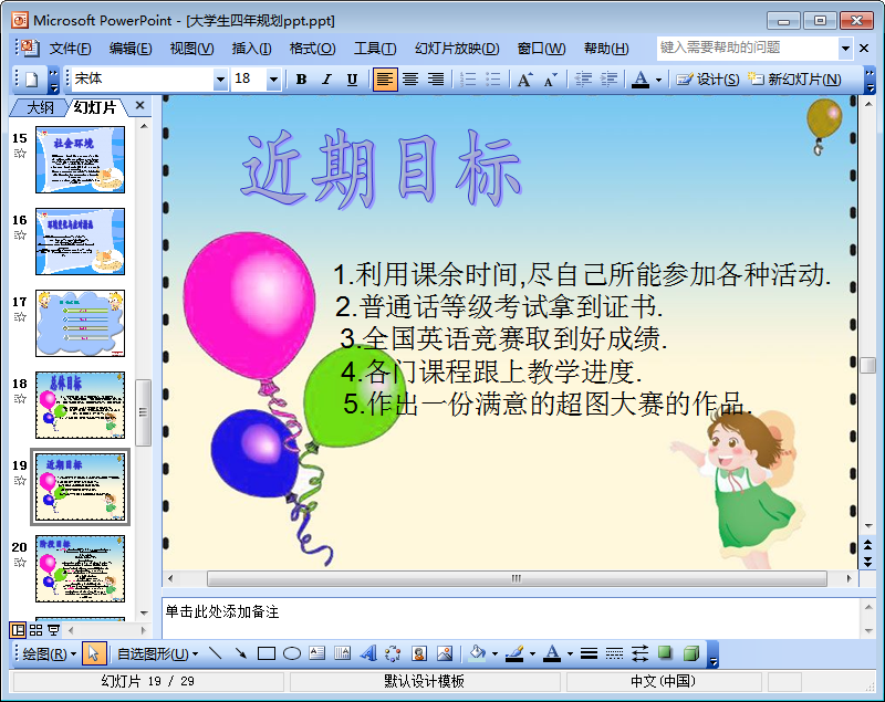 刚进大一,很迷茫,但也不想盲从——这是不少大学新生都有的想法,也有大学生朋友表示“大学四年,刚想明白,该怎么过,就已经是最后一年”——那么大学四年到底应该怎么过呢?小编在这里为大家整理带来了一份精品免费版、共由29页组成的大学生四年规划ppt(大学生涯规划ppt),希望能对大家有个参考作用!